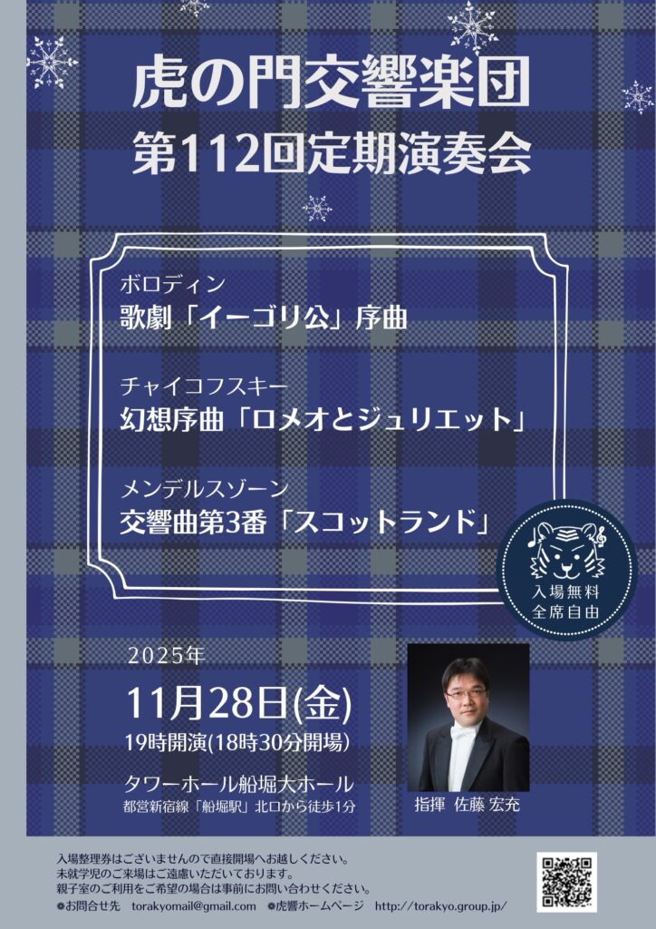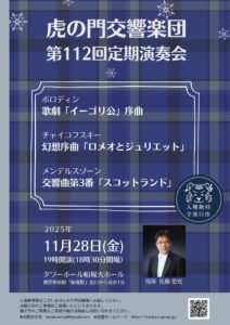 11/28、所属している虎の門交響楽団のコンサートに出演します。